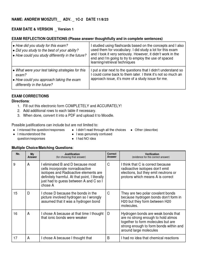 My students are provided the opportunity to receive half credit back for every complete test correction. 3) brief explanations of what they did. They are required to fill out all appropriate items and staple their corrections to their. 1) their original answers to test questions. View, download and print test corrections and reflection pdf template or form online.